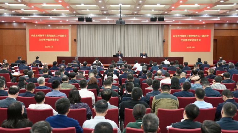 本网讯 11月10日,农业农村部举行学习贯彻党的二十届四中全会精神宣讲报告会。中央宣讲团成员,农业农村部党组书记、部长韩俊作宣讲报告。