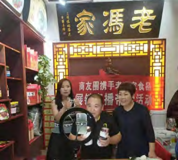 老冯家前几年的发展一直走的是传统商业模式,疫情前运用传统模式驾轻就熟,企业发展也稳步提升。但是在疫情期间,企业的发展受到了严重的冲击。面对这种局面,赵亚丽从新时代大数据、互联网+、新产业、新业态、新模式等新的发展思路中,敏锐发现并捕捉农村电商的新机遇,她成立电商部,组织人员走出去学习成功的电商经验,请进来专家学者进行专业培训、邀约网红大咖达人直播带货。公司目前建立了4个平台20个直播间,组建了有100位带货达人的直播团队。赵亚丽亲自下场带货,每年直播1600余场,每场累计观看人数2万余人,老冯家抖音账号已有5.3万粉丝,遍布全国,且在不断增长中,复购率达到200%,线上线下互动,有力促进了整体销售,2022年电商销售达2700余万元。